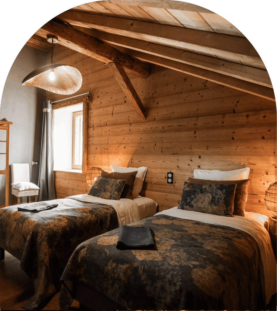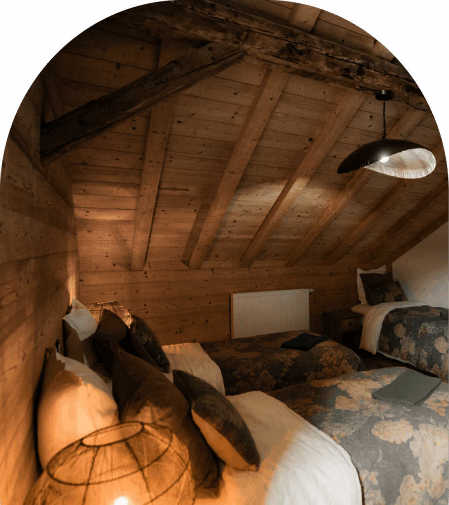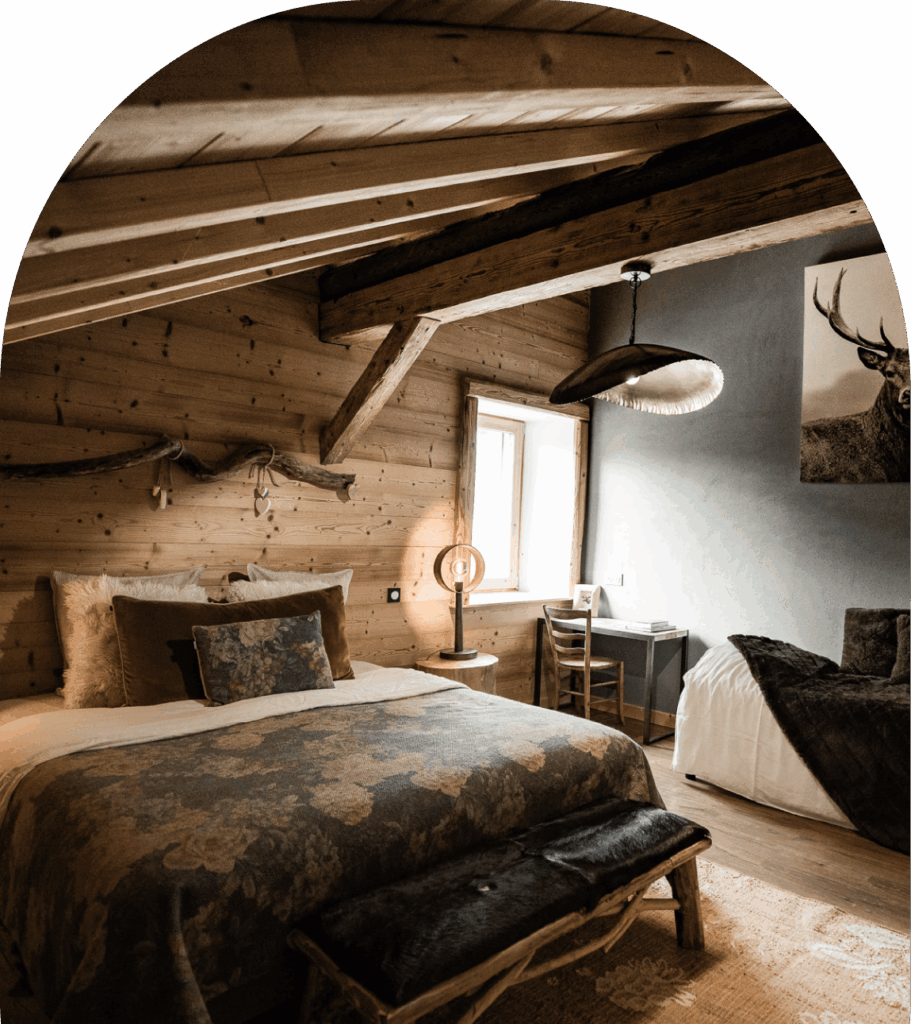 Le chalet se compose de 5 chambres à l'atmosphère chaleureuse et authentique.